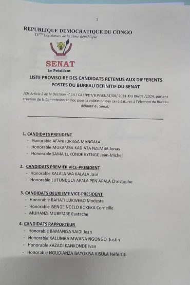 Read MoreDans un circulaire publié par le compte X de la Chambre Haute du Parlement bicaméral congolais. Le Bureau provisoire dirigé par Pascal Kinduelo, vient de publier la liste des candidats ...