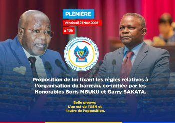 Les députés nationaux sont convoqués en plénière, ce vendredi 21 novembre 2025. A l'ordre du jour, le bureau de la chambre basse du Parlement a programmé entre autres matières à traiter. l'examen et l'adoption de la proposition de loi fixant les règles relatives à l'organisation du barreau, co-initiée par les députés nationaux Boris Mbuku Laka ...