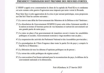 RDC : L’ODEP exige une refonte complète de la gouvernance pour répondre à la crise sécuritaire Face à la détérioration de la situation sécuritaire en République démocratique du Congo (RDC), l’Observatoire de la Dépense Publique (ODEP) a adressé un plaidoyer fort au président Félix Tshisekedi, appelant à une transformation radicale du leadership national. Pour l’organisation, l’urgence ...