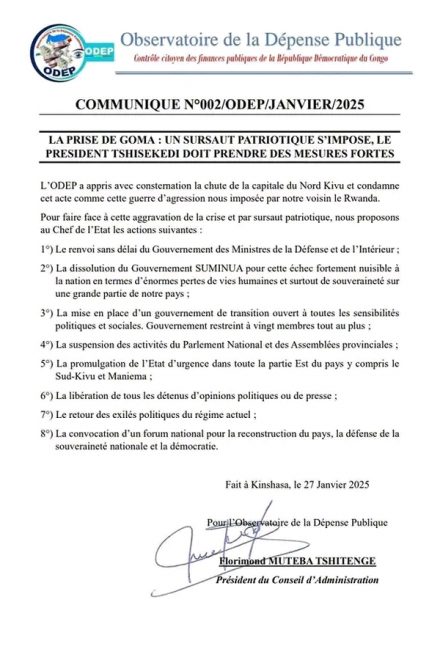 RDC : L’ODEP exige une refonte complète de la gouvernance pour répondre à la crise sécuritaire Face à la détérioration de la situation sécuritaire en République ...
