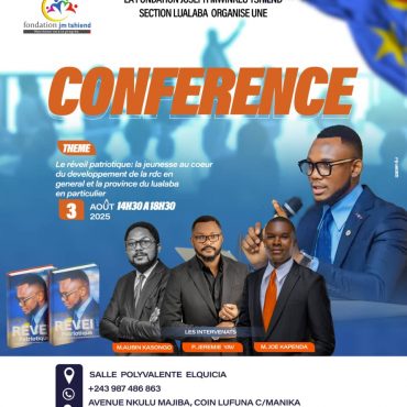 La Fondation Joseph Mwinkeu Tshiend, section Lualaba, organise une grande conférence le 3 août 2025 à la salle polyvalente Elquicia, sur le thème : *« Le réveil patriotique : la ...