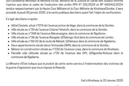 Read MoreLe ministre de la Justice et garde des sceaux, Constant Mutamba, a annoncé que des biens appartenant à Corneille Nangaa, ancien président de la Commission ...