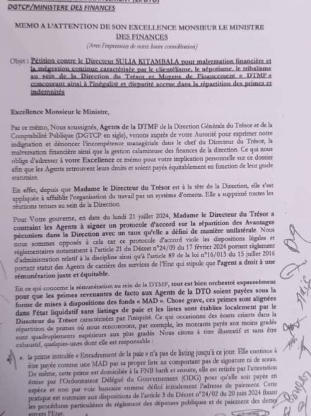Dans un mémorandum livré à la presse ce mercredi 24 juillet 2024, le collectif des agents de la direction du trésor et moyens de financement ...