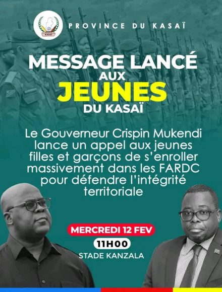 Read MoreDans un communiqué officiel publié ce mercredi, le gouverneur de la province du Kasaï, Crispin Mukendi Bukasa, a annoncé le lancement d’une campagne de recrutement ...