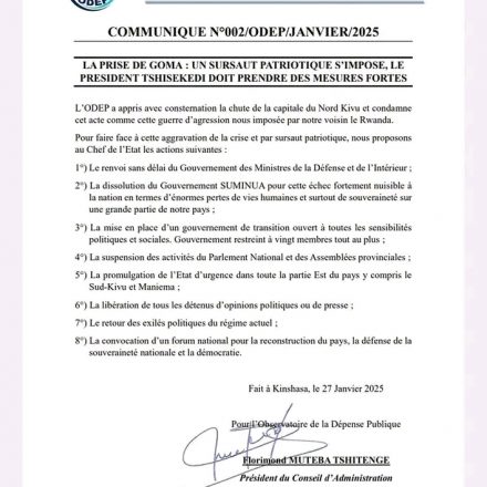 RDC : L’ODEP exige une refonte complète de la gouvernance pour répondre à la crise sécuritaire Face à la détérioration de la situation sécuritaire en République ...