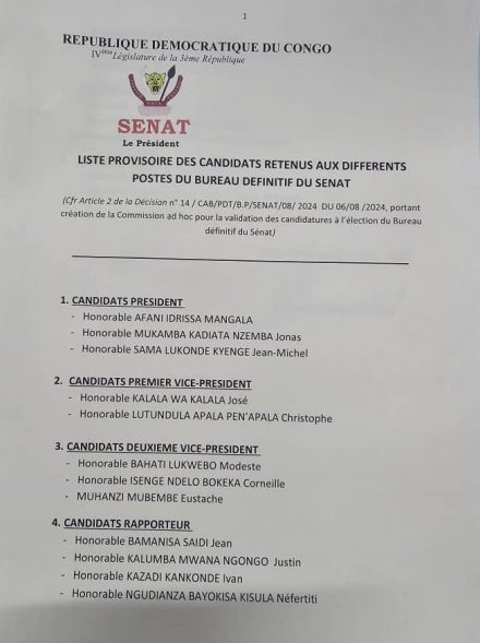 Read MoreDans un circulaire publié par le compte X de la Chambre Haute du Parlement bicaméral congolais. Le Bureau provisoire dirigé par Pascal Kinduelo, vient de ...