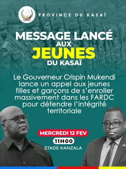 Read MoreDans un communiqué officiel publié ce mercredi, le gouverneur de la province du Kasaï, Crispin Mukendi Bukasa, a annoncé le lancement d’une campagne de recrutement ...