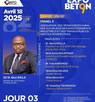 Dans le cadre de la 9e édition d’EXPOBETON, le ministre de la Formation professionnelle, Marc Ekila, présidera un panel crucial le 18 avril à Lubumbashi. ...