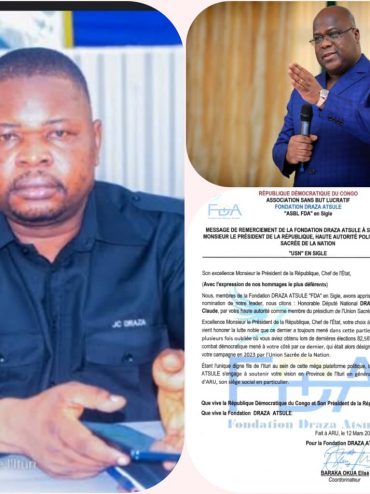 Read MoreAprès la nomination de l’honorable Draza « FDA » Asbl, adresse un message de remerciement au président Félix Tshisekedi