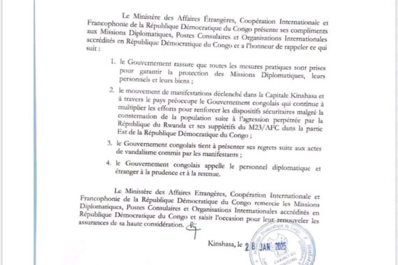 Read MoreDans un communiqué officiel, le Gouvernement de la République Démocratique du Congo (RDC) a exprimé ses regrets suite aux actes de vandalisme survenus lors des ...