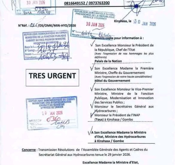Read MoreUne Assemblée générale des agents et cadres de l’Office de Gestion du Fret Multimodal (OGEFREM) s’est tenue ce 11 février, sous la conduite de l’Honorable Adolphe Amisi MAKUTANO, Président du Conseil d’Administration (PCA), assisté du Directeur Général a.i.Cette rencontre d’envergure a marqué un tournant décisif dans la gouvernance interne de l’Office. Elle a permis de lever plusieurs zones d’ombre, notamment sur la question longtemps sensible de l’élection de l’intersyndicale, laquelle a été adoptée à l’unanimité par les agents et cadres, consacrant ...